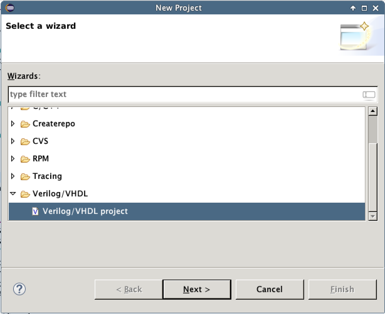 Seleccionemos un nuevo proyecto en la barra de herramientas, y escogemos un proyecto Verilog/VHDL.